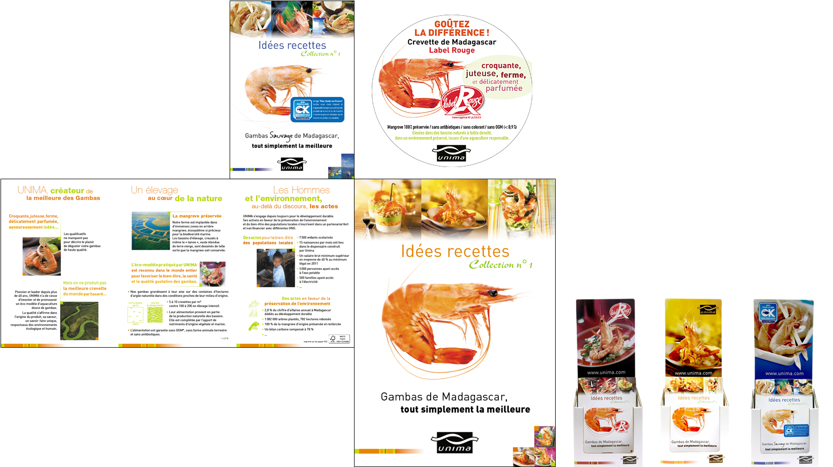 livrets de recettes, stop-rayon et présentoirs destinés aux poissonneries